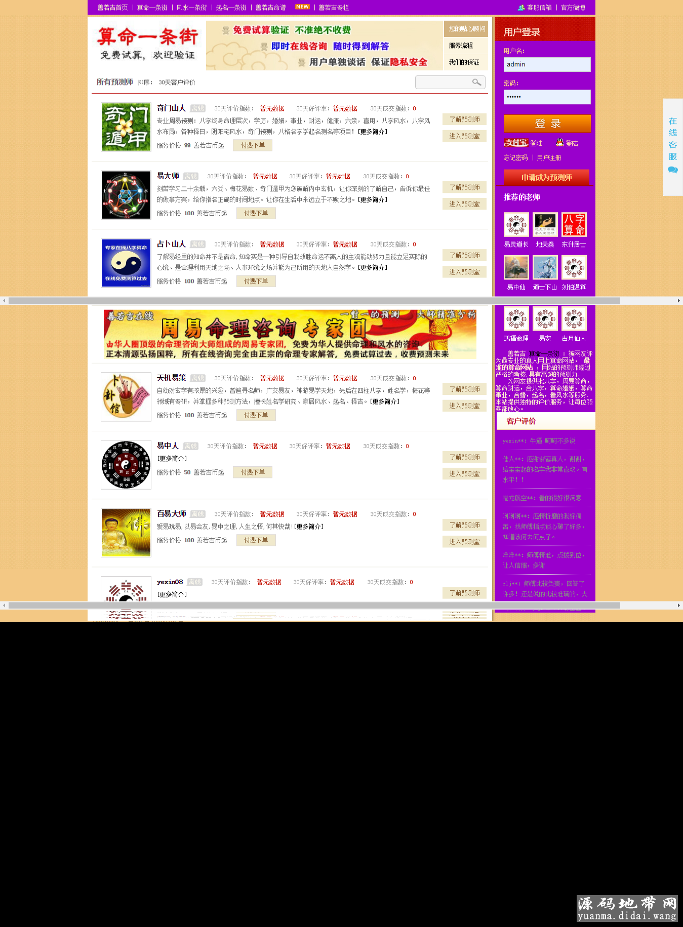 程序为一对一在线算命,算命师入住平台 用户支付算命费用后 由算命师傅一对一服务,平台收取中介费进行盈利